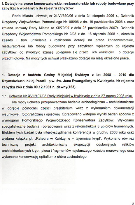 W ramach niezależnych konsultacji społecznych chcę Was zapoznać z projektem uchwały Rady Miejskiej, która będzie przedmiotem obrad najbliższej sesji (ostatni czwartek miesiąca). Ponieważ zauważyłem duże zainteresowanie kwidzyniaków tematem zabytków (szczególnie na forum), to proszę o rzeczowe uwagi na temat przedstawionego niżej programu. Mam nadzieję, że wiele z nich będę mógł wykorzystać w dyskusji na forum rady.