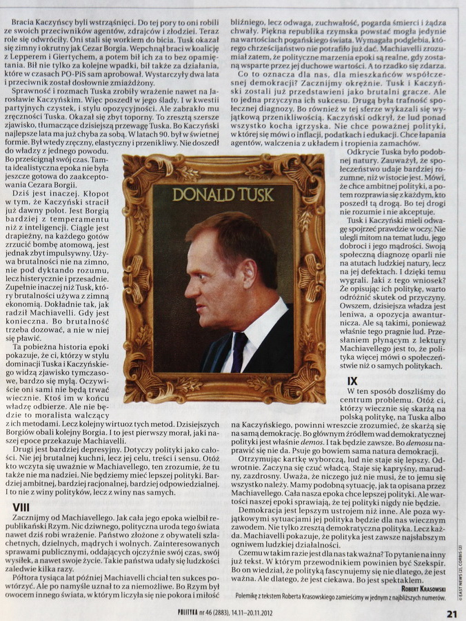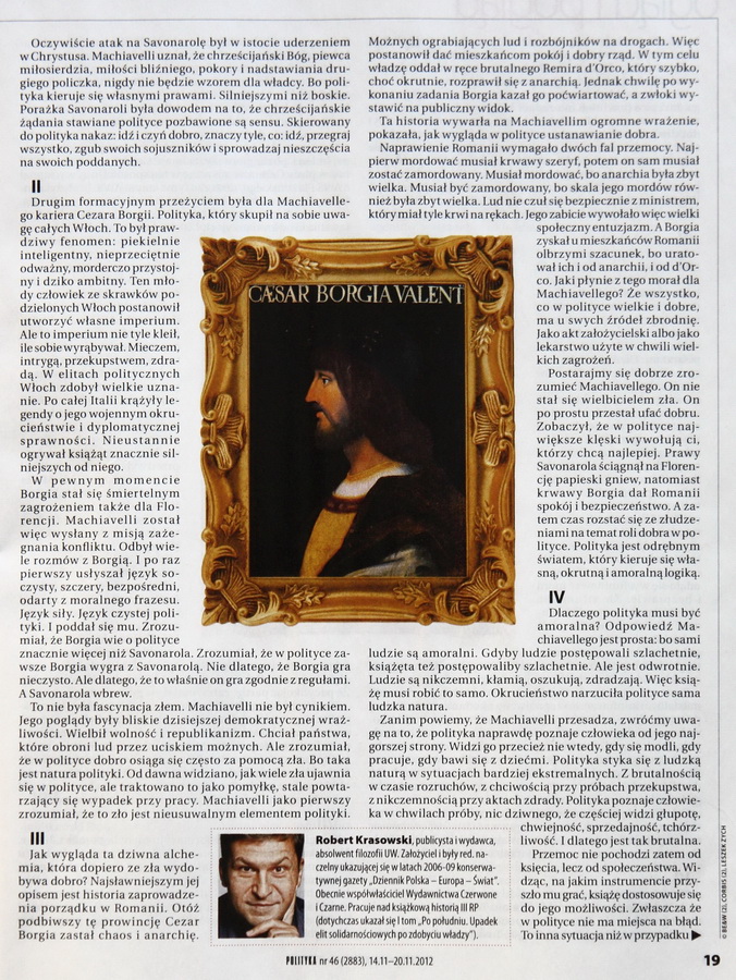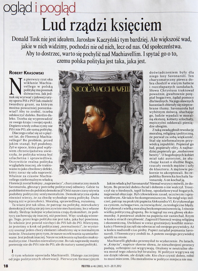 Do przyszłego politykowania przyczynek drugi. Jak to widział Machiavelli... i co chciał nam przekazać Robert Krasowski.